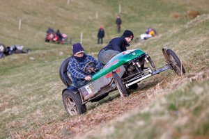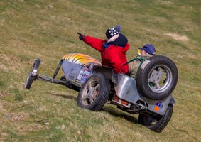 The cars are controlled by a conventional steering wheel generally with a knob on the wheel as steering is a one handed affair, and two “fiddle brakes” which are independent brakes attached to the rear driving wheels, these allow the driver to control wheel spin and to allow the car to turn almost within its own length. The driver is assisted by a passenger who uses his body weight to stabilize the car.